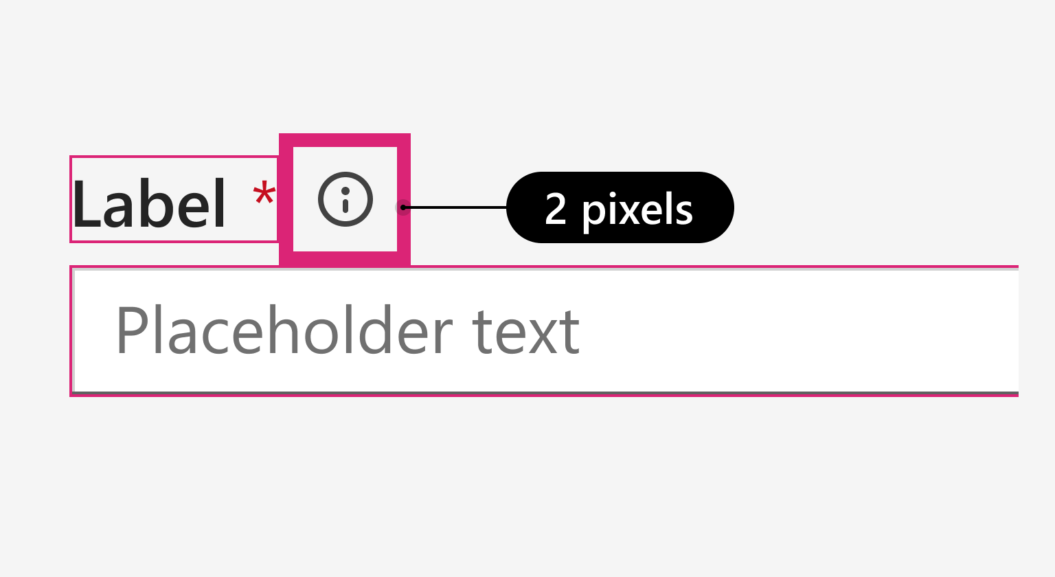 Info labels at a small size (20 x 20 pixels) should have at least a two (2) pixel margin between them and other interactive elements, like in Field. Don’t choose the small size if it’s right next to other components or unless the end user explicitly chose a small or compact density layout.