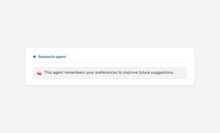 | 3 — Ideal scenario | Users can easily identify all parts of the UI where AI is used (tooltips, badges, labels). AI is visually distinct from human users throughout the experience. For agents: users can easily understand when information they provide is saved to the agent’s memory and how it’s used. |