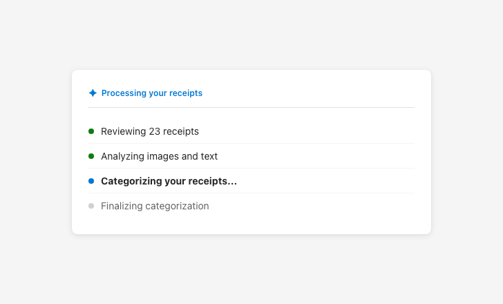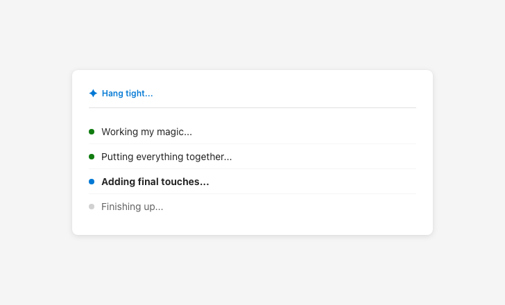 Use UI elements and descriptive messaging during model and agent processes to give users clues about what the AI will do next (e.g., “Gathering sources”).
