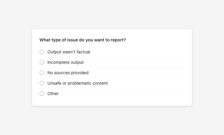 Surface after AI outputs. Support categorization so users can report specific issues.
